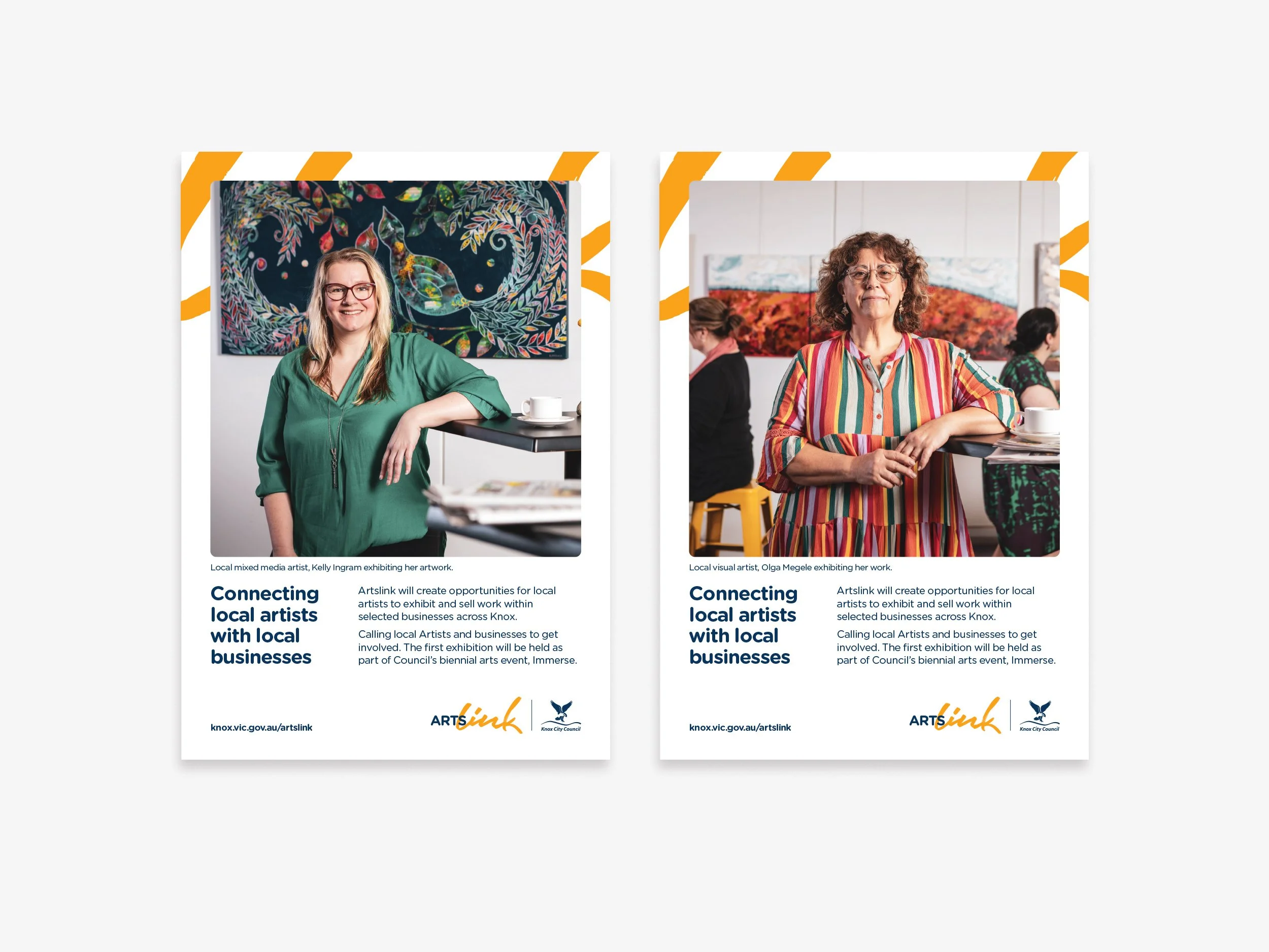 Logo design and branding for Arts Links. Arts Link fills Knox’s gallery gap by connecting local artists with local venues to showcase and sell their work.